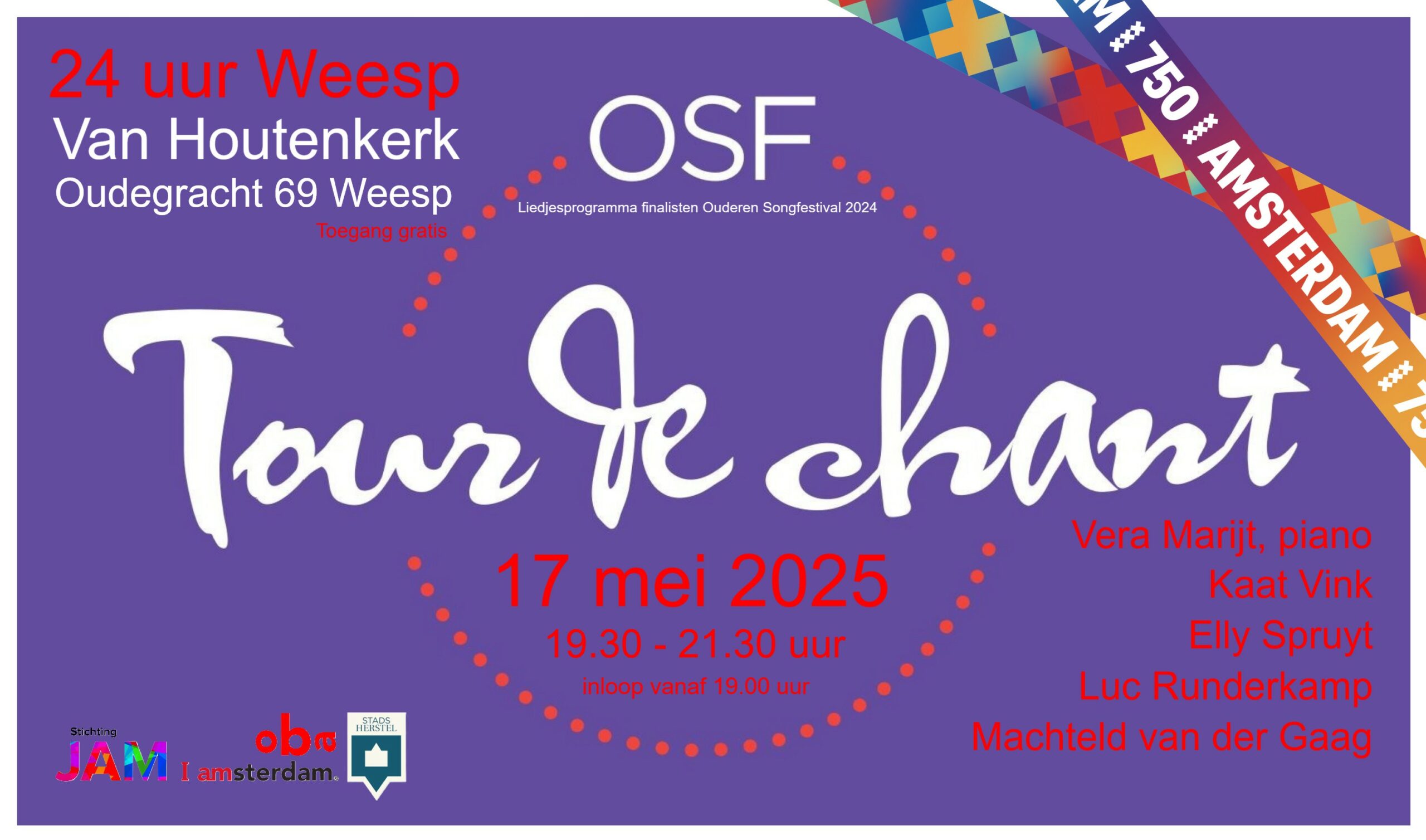 De Tour de Chant is een rondreizend liedjesprogramma. Het komt voort uit het Ouderen Songfestival, het landelijke zangfestijn voor zangliefhebbers van 55 jaar en ouder. Na het festival trekken de finalisten in telkens wisselende samenstelling samen met een van de Tour-pianisten, Vera Marijt of Sjoerd Brouwer, in de lente- en zomermaanden langs Amsterdamse ontmoetingscentra voor ouderen. Tijdens 24 uur Weesp brengen de vier zangers een afwisselend programma dat varieert van Franse chansons tot Nederlandse kleinkunstpareltjes en van swingende soulnummers tot zwoele jazz classics.