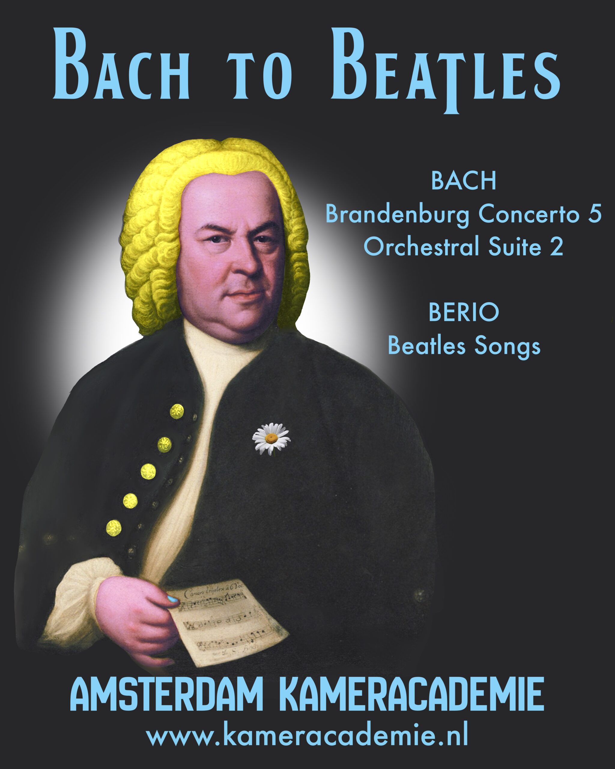 Ontdek de fusie van Bach en The Beatles met de Amsterdamse Kameracademie! Geniet van Bachs legendarische Brandenburgse Concerto nr. 5 en Orkestsuite nr. 2, en van de zelden uitgevoerde arrangementen in Bachs stijl van populaire liedjes door The Beatles.