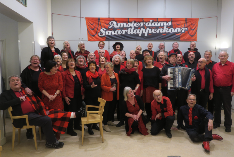 Het Amsterdams Smartlappenkoor: Lachen, zingen en huilen met Het Amsterdams Smartlappen Koor. Juist nu, in deze barre tijden! Stilletjes luisteren en huiveren bij ‘Het bedelmeisje’, ‘De schooier en zijn hond’, ‘De dievenwagen’ en ‘Een vrouw die niet deugt’. Van harte en uit volle borst meezingen met ’De afgekeurde woning’, ‘Ach vaderlief toe drink niet meer’, ‘De smokkelaar’ en ‘Geef mij maar Amsterdam’. De zangers en zangeressen van het Amsterdams Smartlappenkoor vertolken ruim 125 levensliederen op een intense en doorleefde manier. Als Het Amsterdams Smartlappenkoor losbarst, gaat de adrenaline stromen, wordt er meegezongen, meegedeind, gelachen en gehuild.