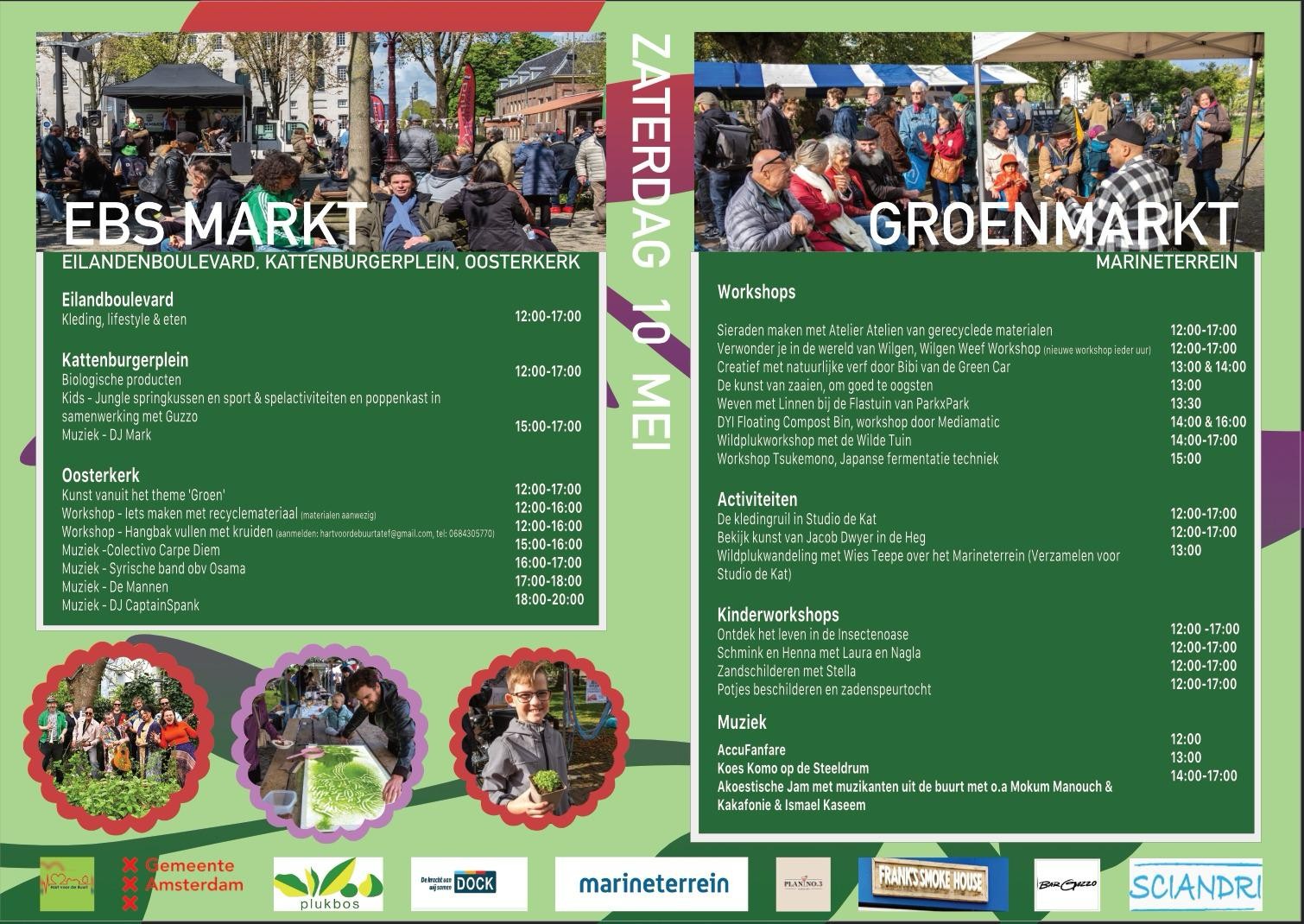 Zaterdag 10 mei barst het van de gezelligheid op de EBS Markt en Groenmarkt in Amsterdam! Ontdek duurzame workshops, kinderactiviteiten, live muziek, kunst, biologische producten en nog veel meer op het Eilandboulevard, Kattenburgerplein, Oosterkerk én Marineterrein.