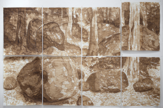 Ieder van hen benadert dit onderwerp op een persoonlijke manier, met als gemene deler dat het landschap wordt gesuggereerd in plaats van letterlijk verbeeld. Inspiratie wordt gevonden in Japanse tekeningen, waarin de kracht van de natuur voelbaar is zonder expliciete uitwerking. Materialen als inkt en papier behouden hun eigen waarde, terwijl ze tegelijk verwijzen naar een andere, meer contemplatieve dimensie. Deze subtiele benadering van natuur en landschap komt op verschillende manieren terug in het werk van alle deelnemende kunstenaars.