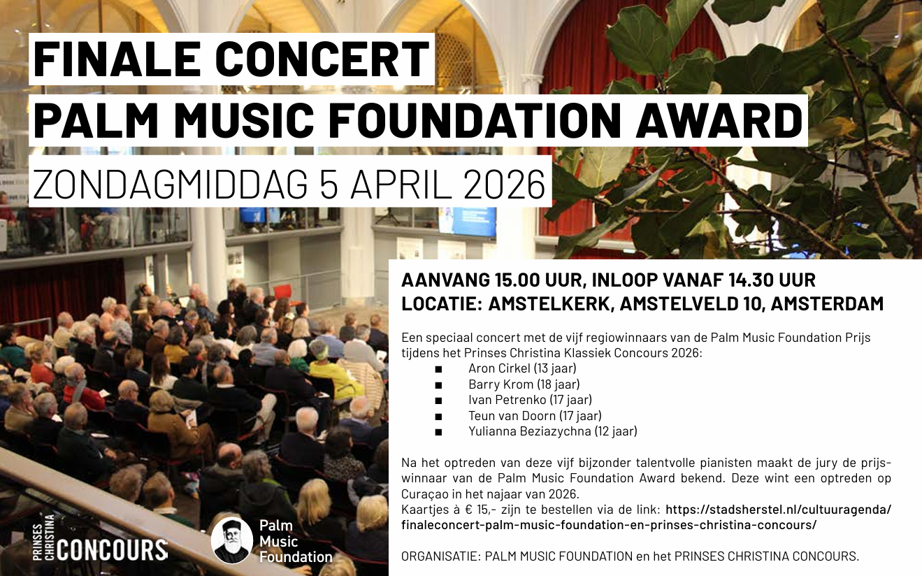 Na het optreden van deze vijf bijzonder talentvolle pianisten maakt de jury de prijswinnaar van de Palm Music Foundation Award bekend. Deze wint een optreden op Curaçao in het najaar van 2026.