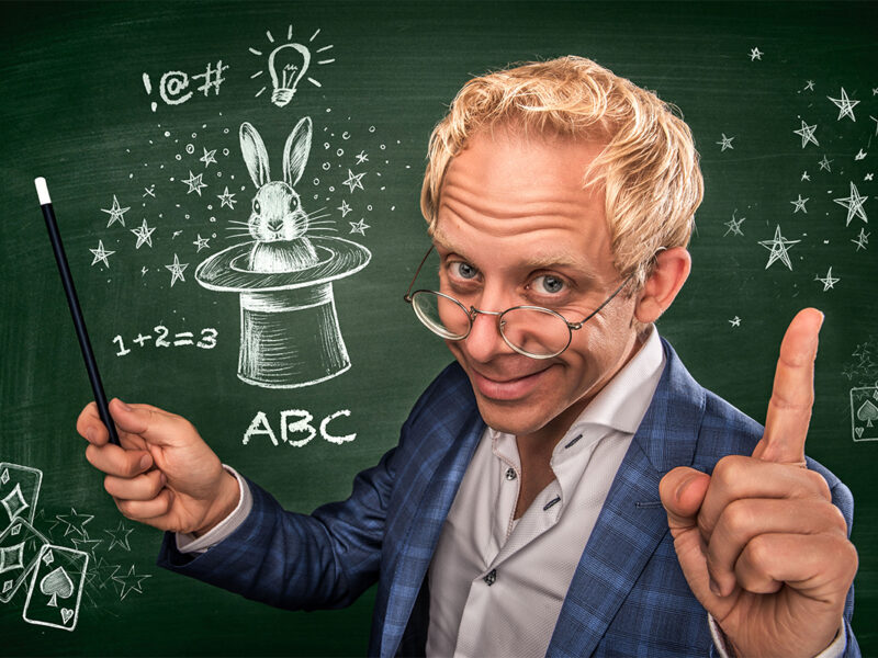 Vandaag mag meester Huub invallen op een nieuwe school. En hij heeft er zin in! Gelukkig treft hij een klas vol enthousiaste kinderen. Maar hoe meer lessen hij geeft des te meer meester Huub erachter komt dat dit geen normaal klaslokaal is. Hier is iets geks aan de hand… Ontdek samen met meester Huub de geheimen van de betoverde klas. Een familievoorstelling vol magische trucs, grappige twists, jongleerkunsten en verrassende effecten.