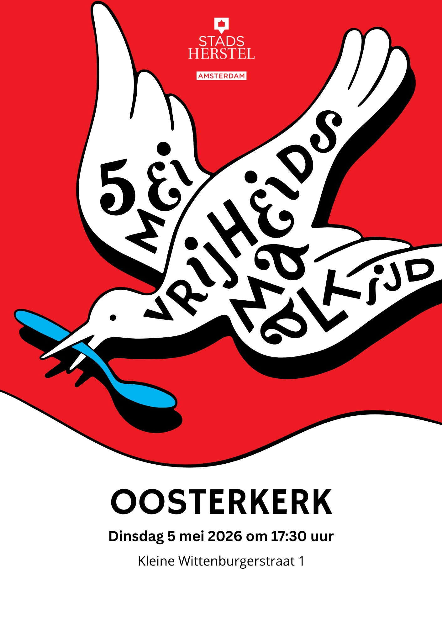 In de Oosterkerk is iedereen op dinsdagavond 5 mei van harte welkom voor het vrijheidsdiner, met een samengesteld programma voor en door buurtgenoten. Voor soep en een toetje wordt gezorgd, neem een gerecht en drankjes mee om te delen met uw buren. Vergeet ook niet een bord en bestek!