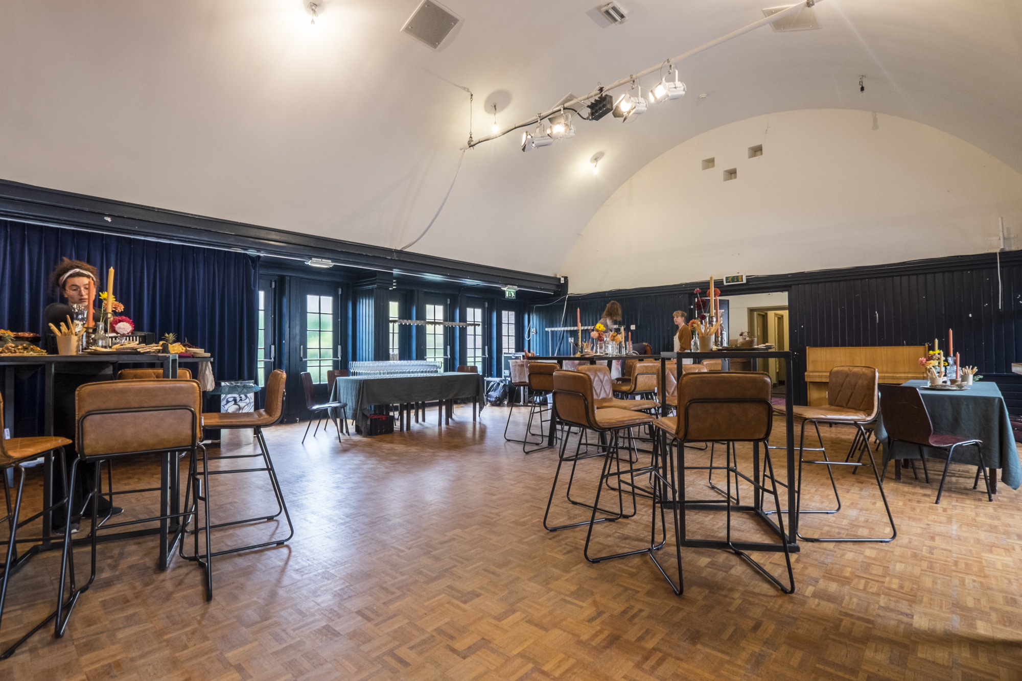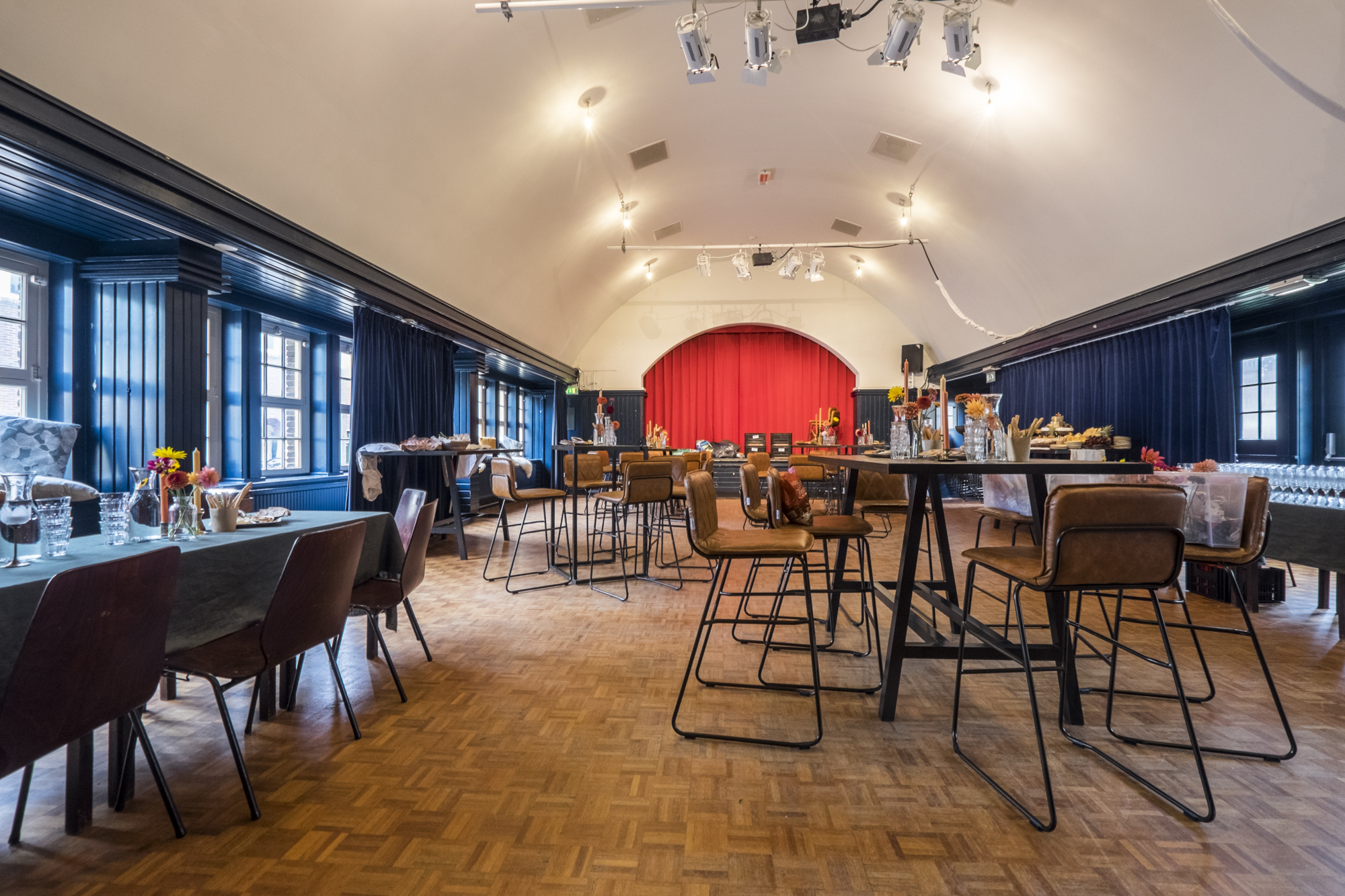 ’t Zonnehuis is een veelzijdige locatie. Veel mensen denken bij ’t Zonnehuis aan de indrukwekkende theaterzaal, maar het gebouw heeft ook een gezellige kleinere zaal, de Blauwe Zaal. Deze zaal wordt veel ingezet voor de buurt, helemaal in de geest van de ontstaansgeschiedenis van het gebouw. Kindervoorstellingen, koorrepetities en dansmiddagen voor ouderen, van alles komt voorbij. Ook deze ruimte is te huur voor kleinere zakelijke activiteiten, zoals brainstorms en lezingen. Daarnaast is het natuurlijk perfect als breakout room te boeken in combinatie met de grote zaal. Beide ruimtes zijn afzonderlijk van elkaar te huur.