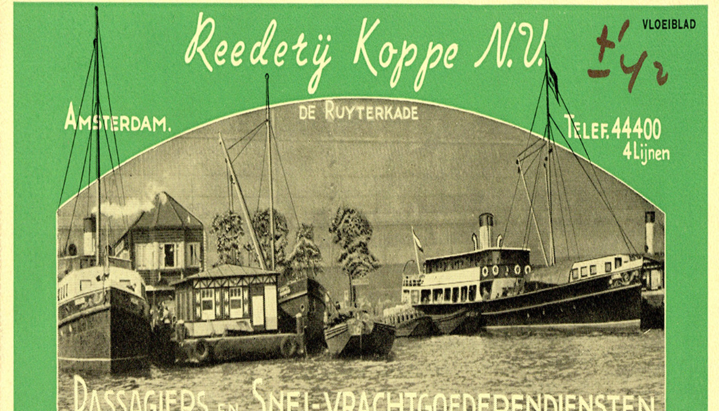 Langs de kade staan op grote borden de namen van de rederijen en hun belangrijkste bestemmingen. Ook adverteren de maatschappijen hun vertrektijden en prijzen in de kranten. Vervoersbiljetten voor enkele reizen zijn verkrijgbaar bij de conducteurs op de boten terwijl dagretours en couponboekjes uitsluitend gekocht kunnen worden bij de diverse kantoortjes op de aanlegsteigers. En zo gaat het ook in ons pandje. Het is dan van Reederij Koppe, een Nederlandse rederij die tussen 1909 en 1972 voornamelijk actief is in de binnenvaart.