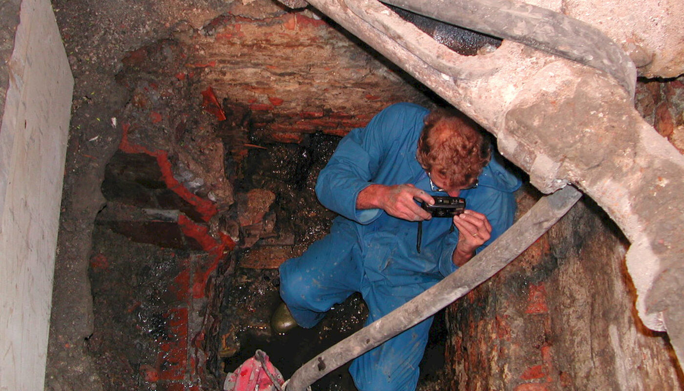 Rusland 12, AmsterdamOp deze plek was vóór 1606 een suikerbakkerij gevestigd. Hier werden twee huizen onder één dak geplaatst, met daarnaast ook een huis aan de achterliggende Slijkstraat. In de grond hebben we resten van eerdere bebouwing gevonden.
