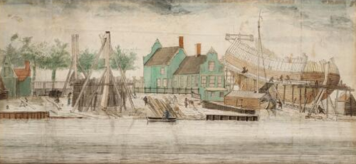 Op de gevelsteen is een schip afgebeeld waaraan volop wordt gewerkt. Het symboliseert de lokale scheepsbouw (houtbewerking en werfwerk), passend bij de geschiedenis van de Klauwershoek war het pand staat en waar veel scheepswerkers woonden en hout uit de Oostzee werd verwerkt.