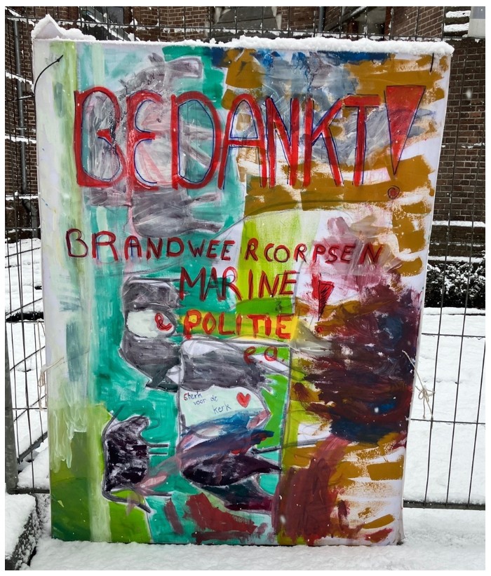 Foto’s gemaakt na de brand en bedankje voor de brandweer, politie en marine die geholpen hebben met blussen.