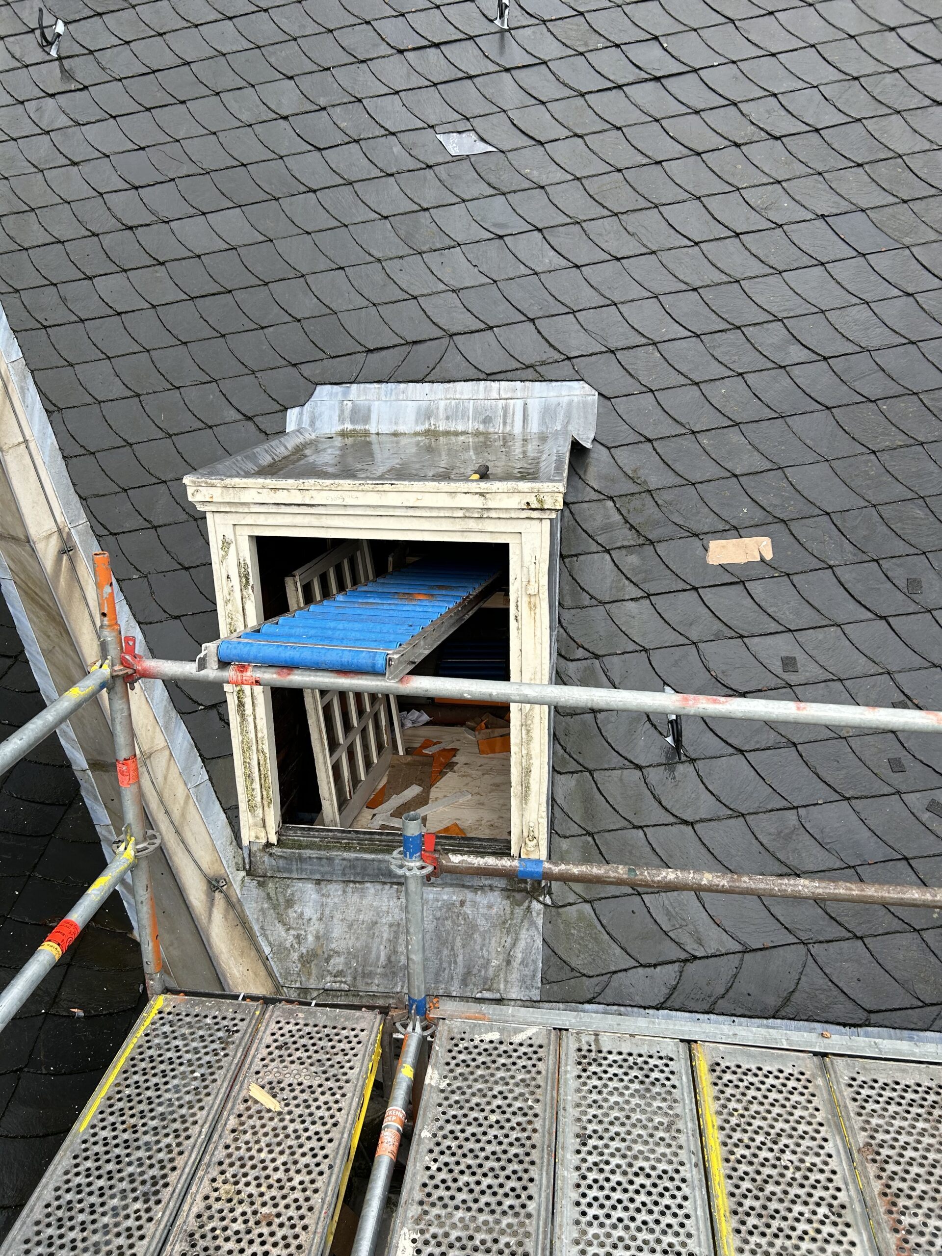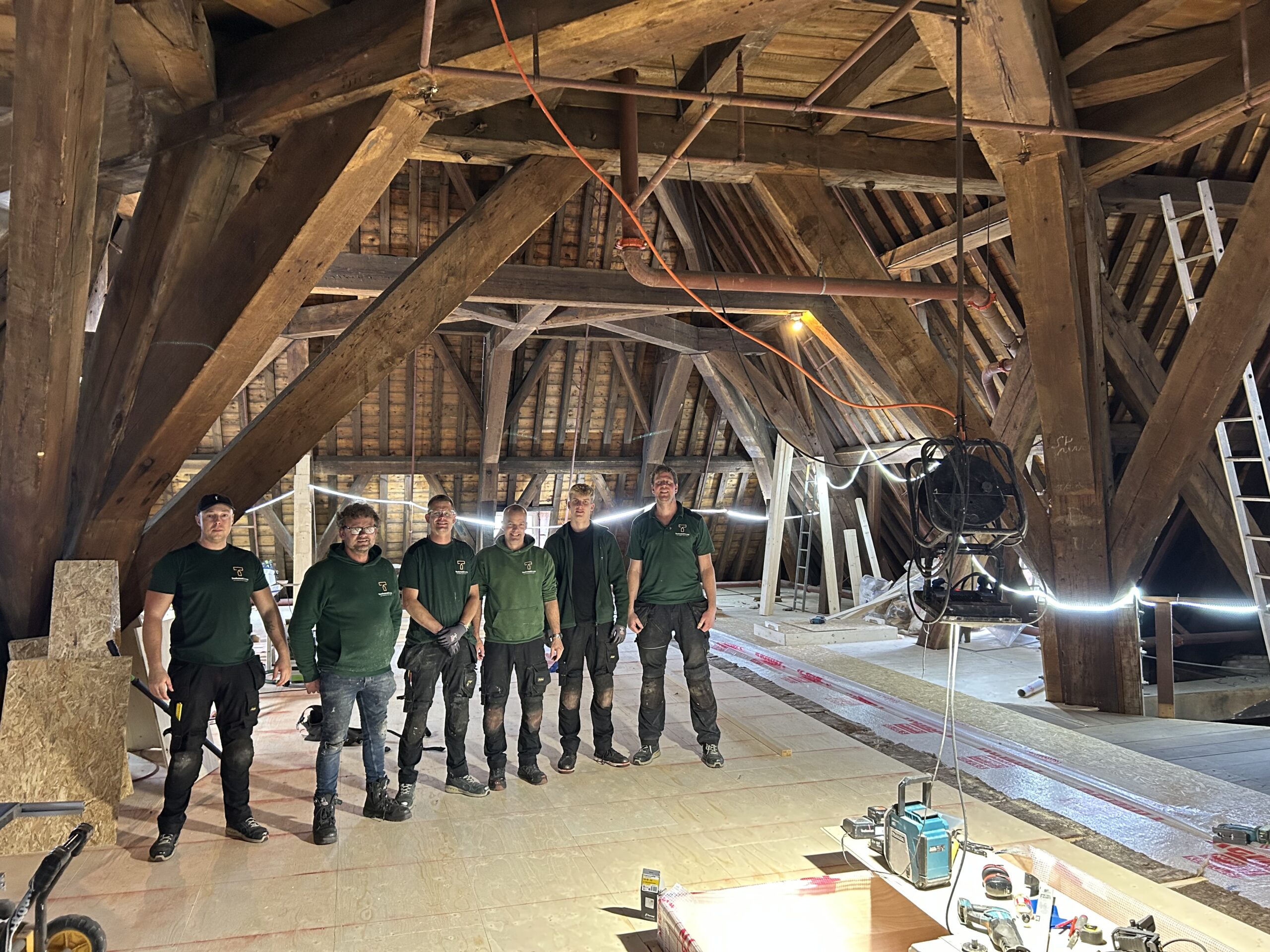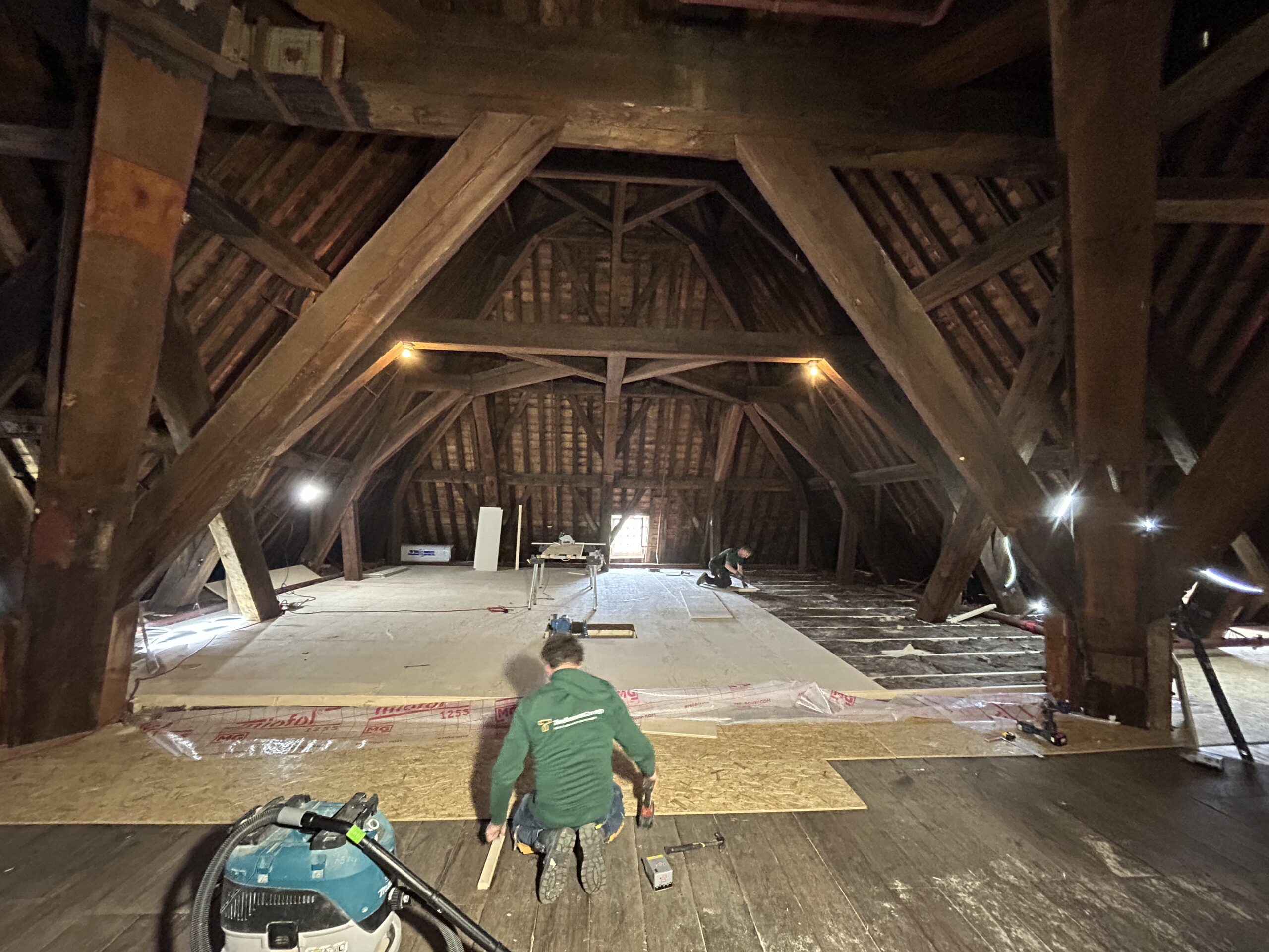 De klus wordt uitgevoerd door Toekomstgroep, en hun naam zegt het al: ze zijn bezig met de toekomst. Bij dit werk leiden ze ook jongeren op. Zo is er een leerling-timmerman betrokken, evenals een stagiaire bouwkunde. Dat juichen wij van harte toe want wij schrijven voor dat elke restauratie een leerlingbouwplaats is, zodat het restauratieambacht doorgegeven wordt.
