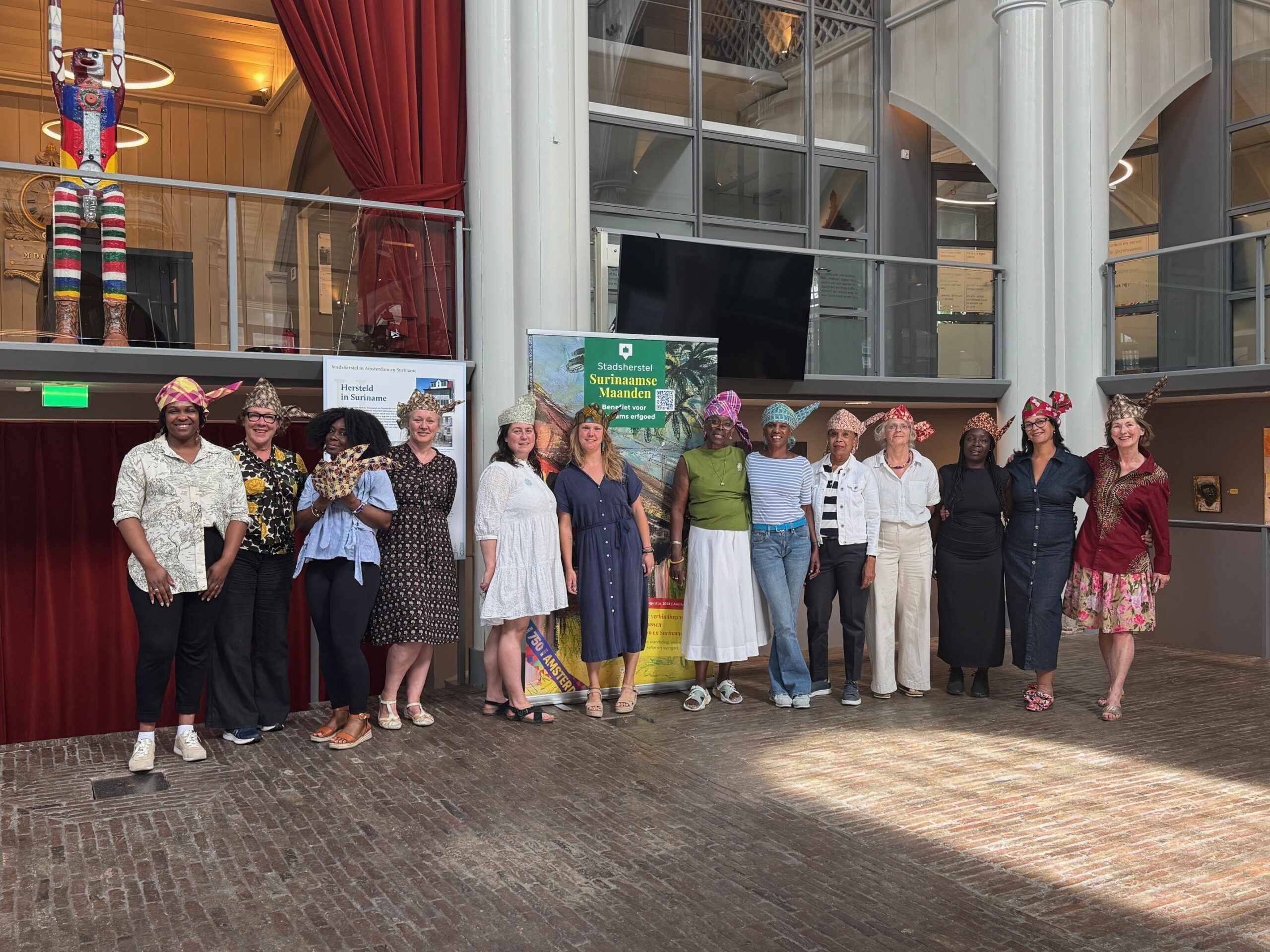 Zo waren er diverse lezingen, een workshop angisa vouwen, een expositie in de Amstelkerk, een Surinaamse Maanden-wandeling langs panden in de stad met een link naar Suriname, en deelden we in onze online scheurkalender dagelijks een Amsterdams én een Surinaams weetje. Daarnaast was er een open atelier, jazzmuziek, en nog veel meer.